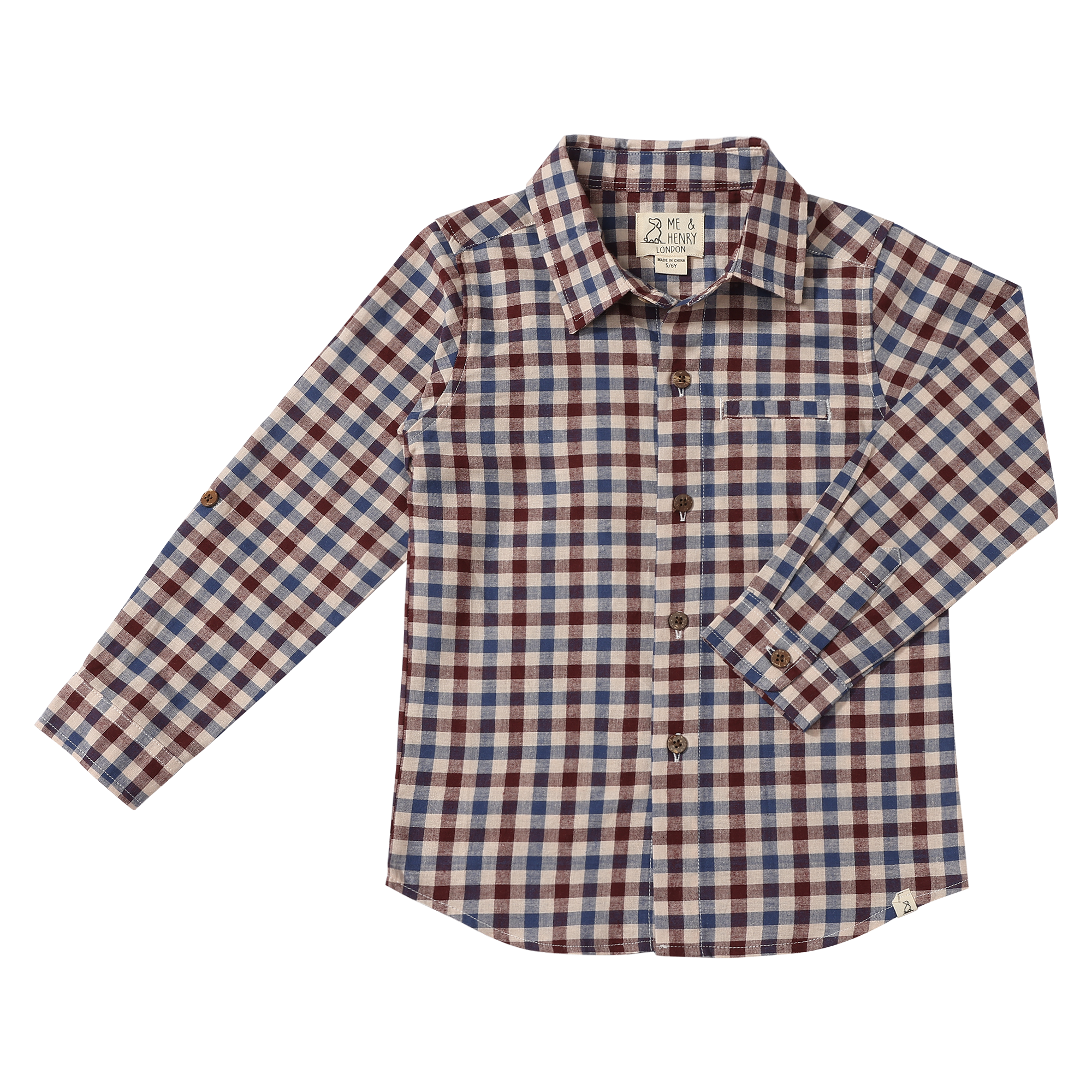 Me & Henry - Atwood Blue, Burgundy, and Cream Plaid Woven Shirt
