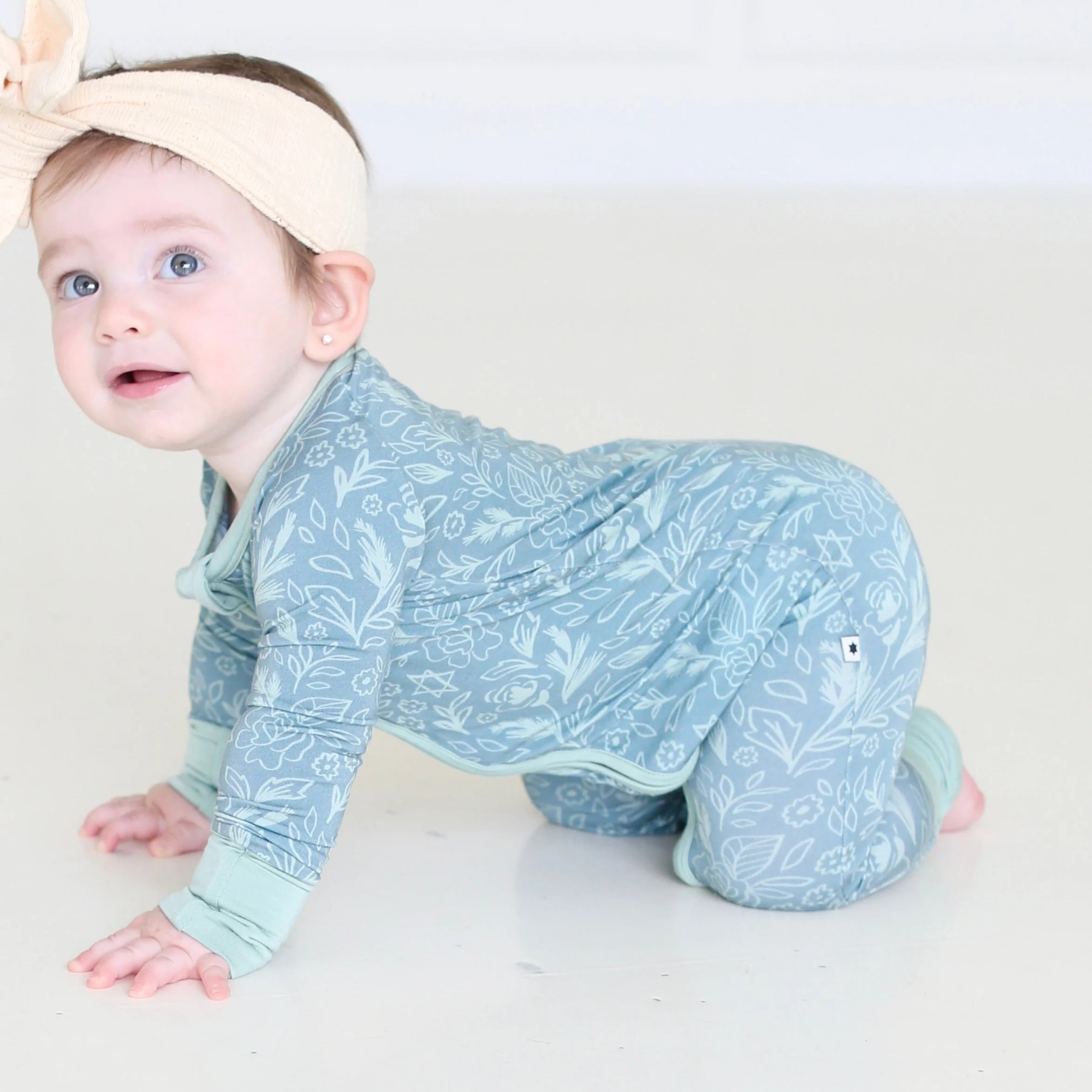 Our Sage Bloom Zippy pajama blends soft green florals with delicate Stars of David for a look that’s both peaceful and meaningful. The design is subtle yet special — a quiet nod to Jewish identity wrapped in timeless beauty. Elegant, calming, and perfect for everyday wear.
