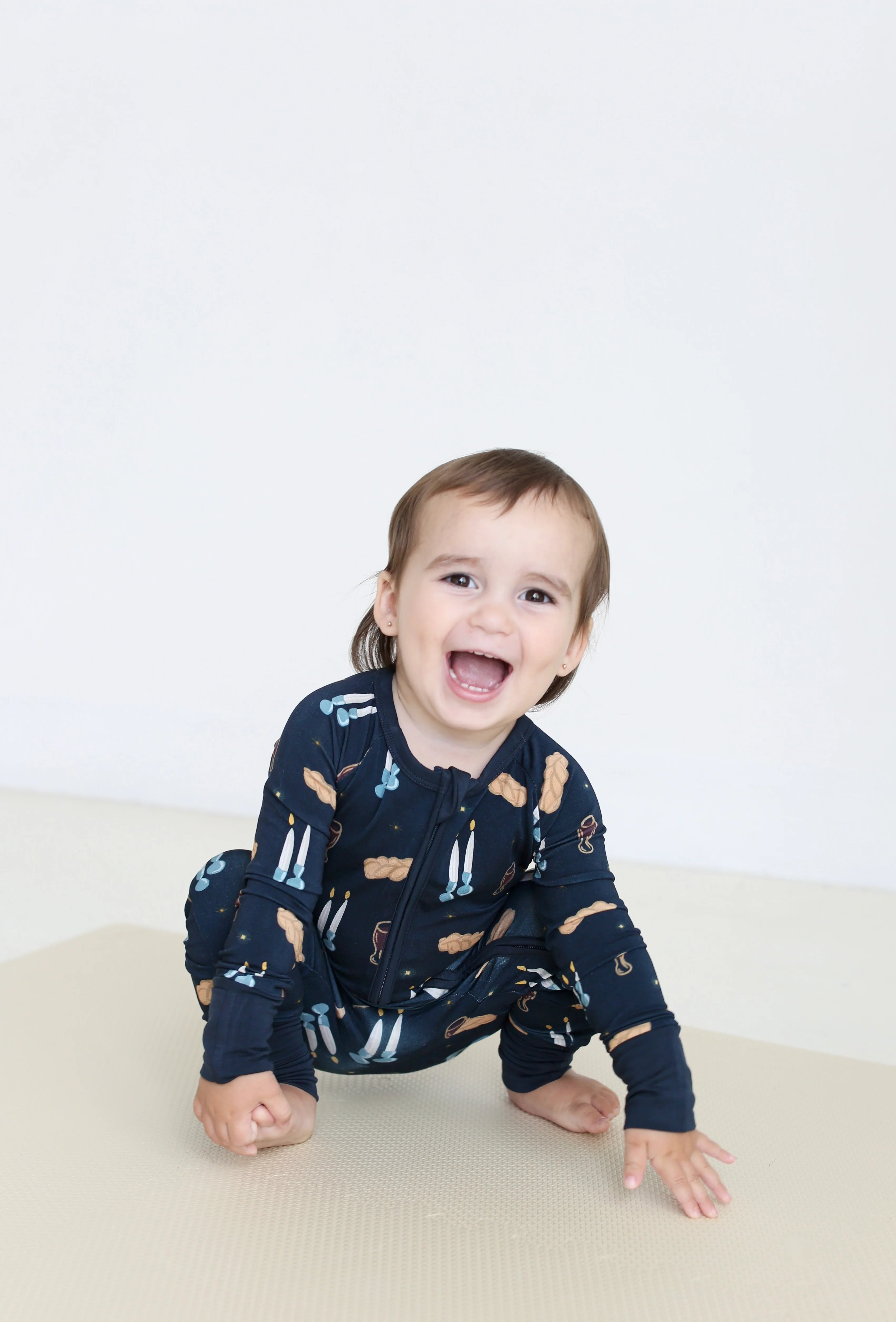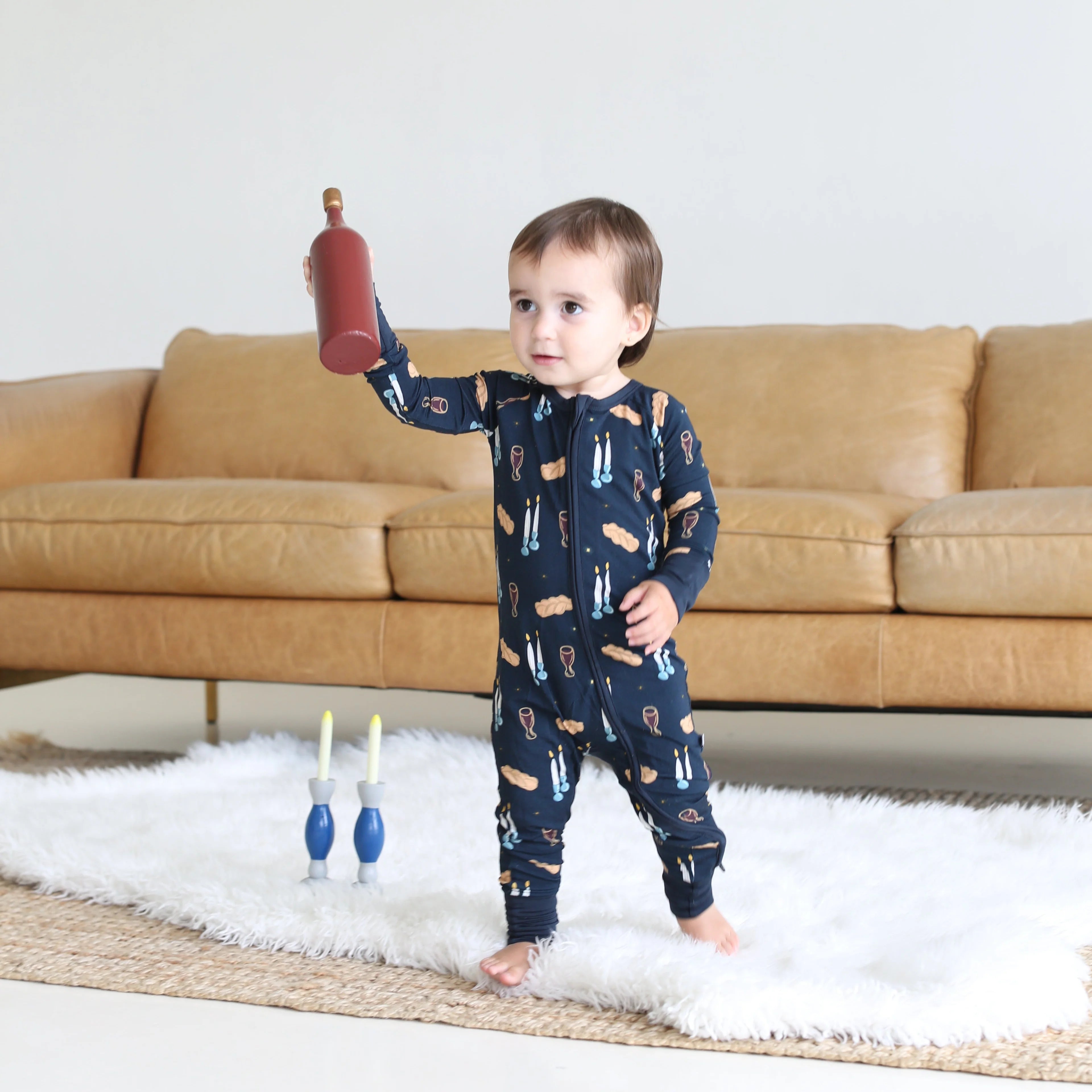 Shiloh & Kate - Shabbat Candles & Challah Zipper Onesie