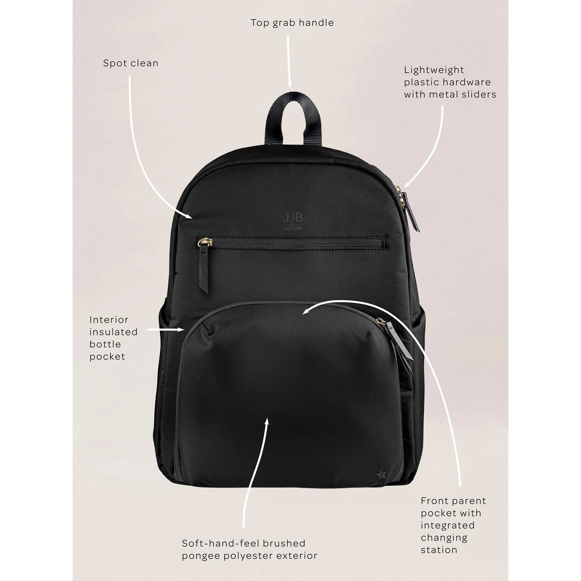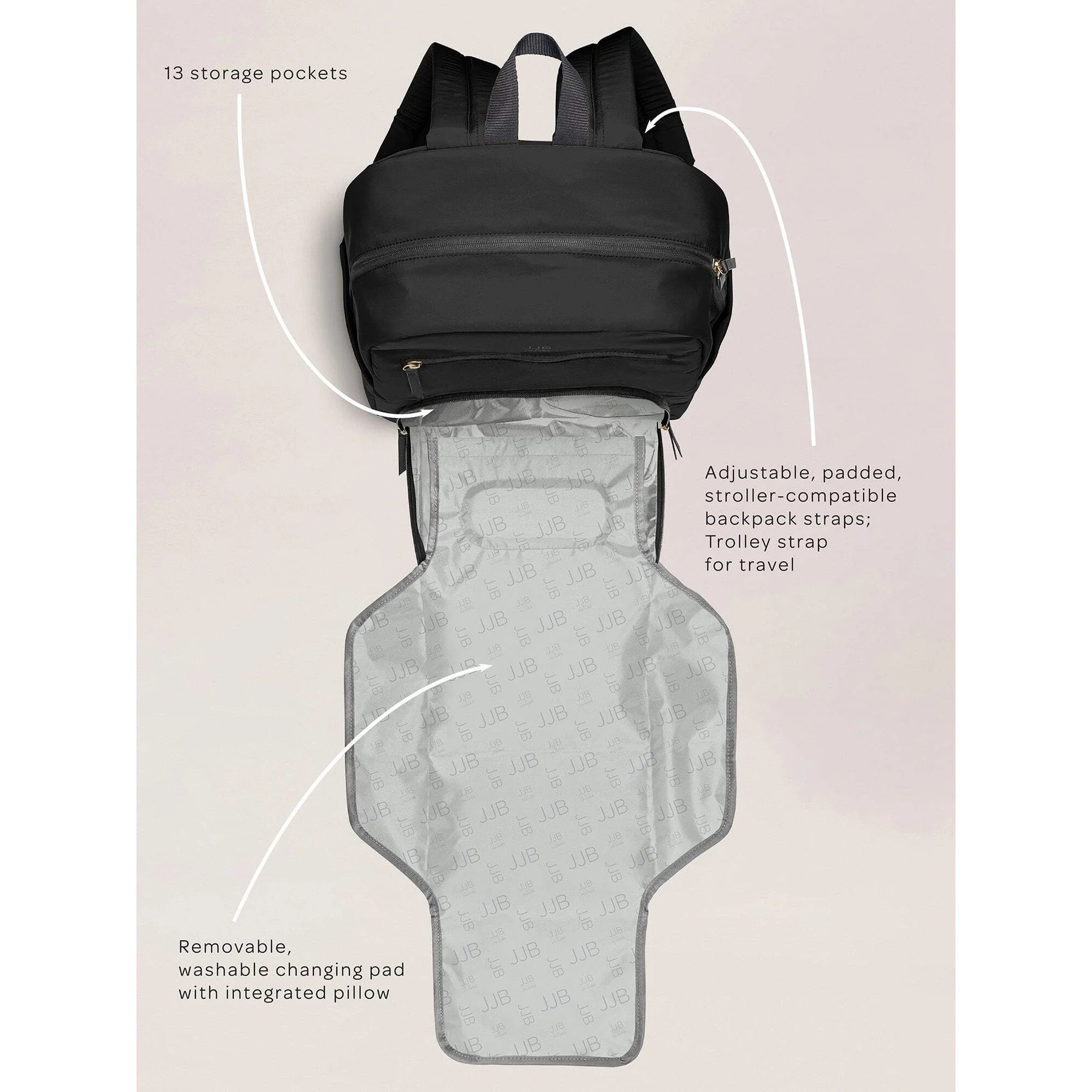 The large Deluxe Backpack from JJB by JuJuBe has tons of pockets and a built-in changing station