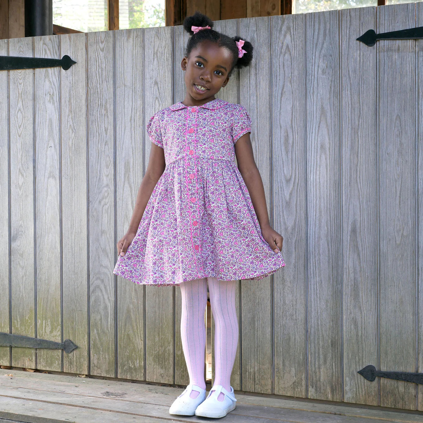 The Rachel Riley Purple Floral Button Front Dress combines classic elegance with modern charm. Featuring a delicate purple floral print and short sleeves, this dress offers a refined silhouette complemented by a button-front detail. Perfect for stylish occasions, it provides both comfort and timeless sophistication.