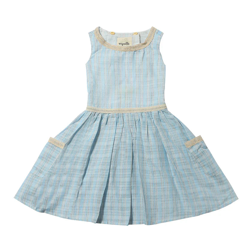 The Vignette Nina Dress brings double the charm with two vibrant floral prints and one stripe print, perfect for twirling into sunny days. Made from 100% soft cotton, it’s breathable and comfy for all-day play. This dress is a delightful blend of style and ease, designed to brighten any little wardrobe with a playful floral twist.
